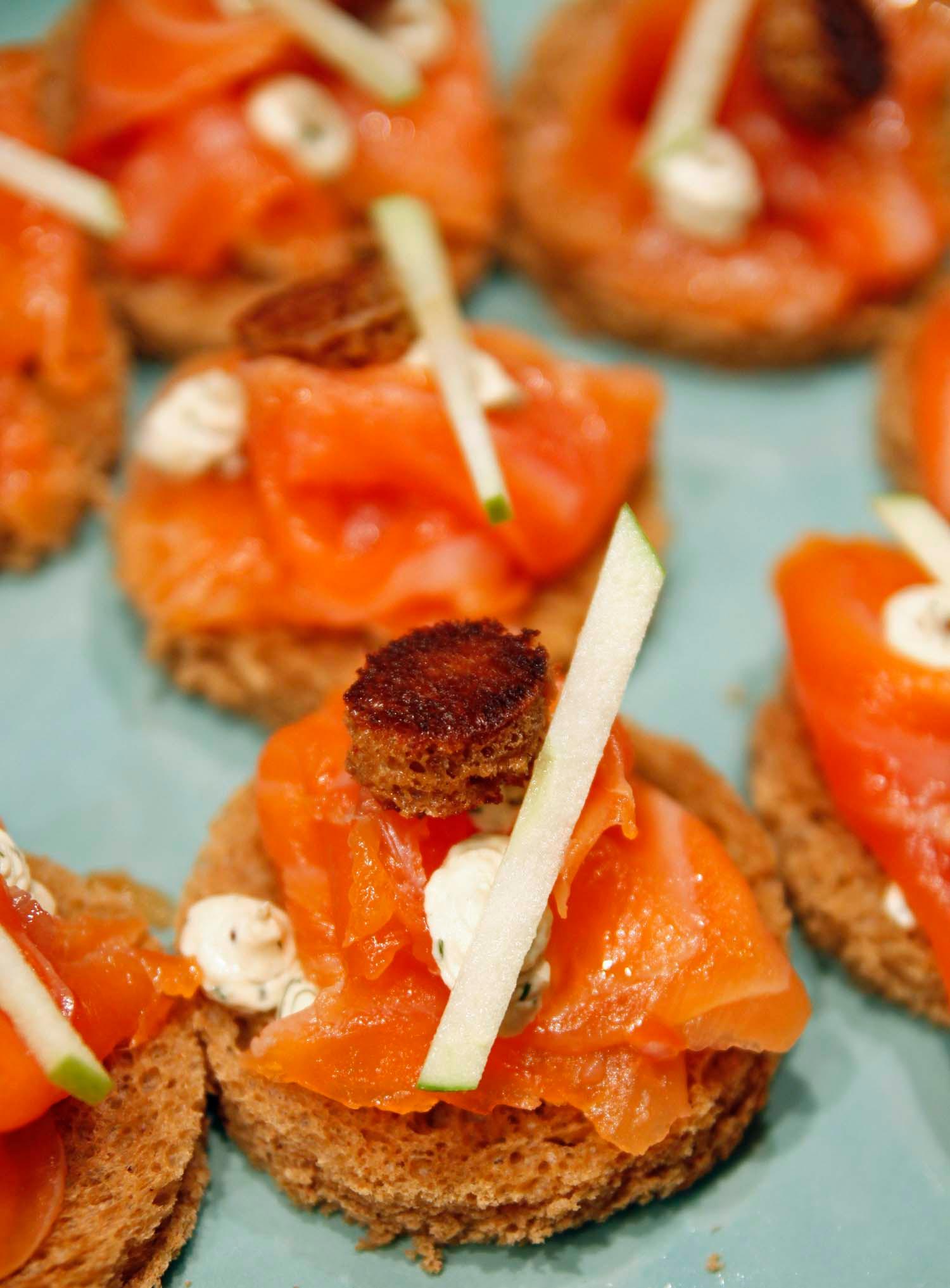 Passar till: Jultapas – Vörtbröd med dubbelgravad lax, hovmästarfärskost, äpple och smörstekt vörtbröd