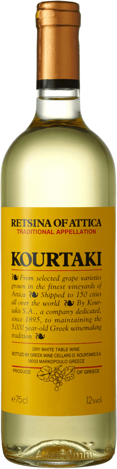 För dig som inte har provat retsina - här har du en perfekt intro! Servera välkyld till kalla meze, oliver och den klassiska salladen med fetaost. Kourtaki är kryddig med toner av pinje, ceder, lite kåda och gul frukt - precis som sig bör!