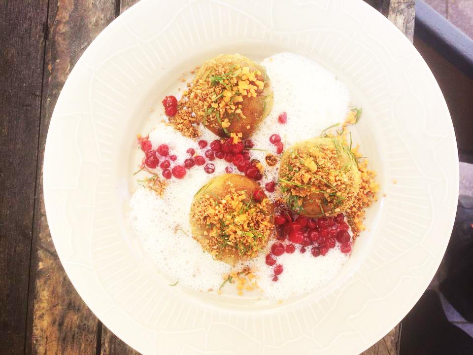 Passar till: Kroppkakor med Karl-Johansvamp, skum av Prästost, syltade morötter, rostade hasselnötter och rårörda lingon