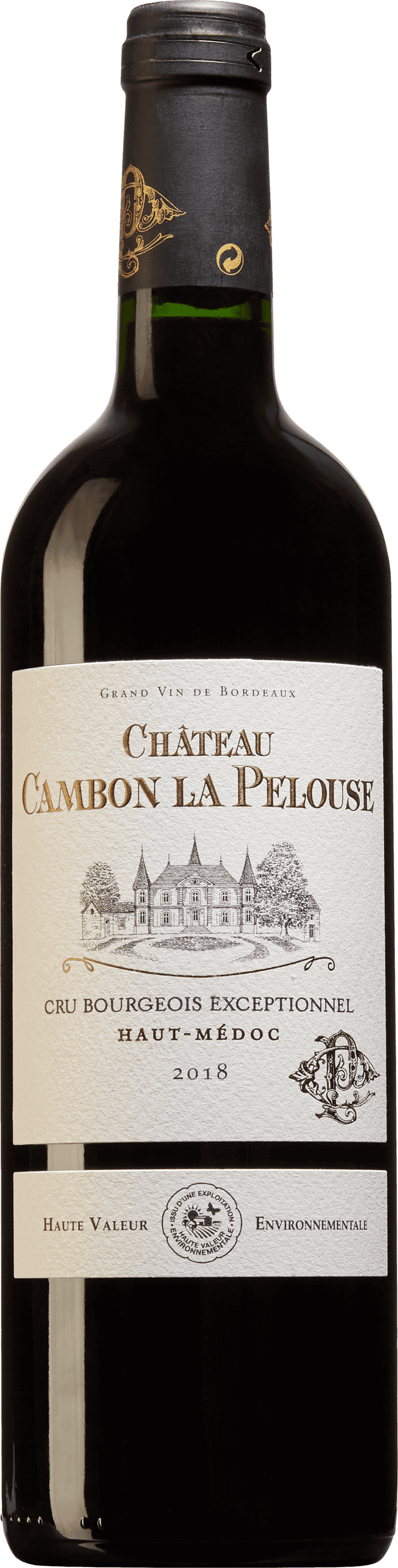 Cambon la Pelouse 2018 är en cru bourgeois exceptionnel. Det är ett lite enklare men också tillgängligt ungt vin från Bordeaux. Vinet har en fin fruktighet med smak av svarta vinbär, mogna plommon och en lätt örtig blommighet. Det har en liten jordighet, bra struktur med lite torra gryniga tanniner samt rostade ekfatstoner. Eftersmaken är lång och avslutas i en fin kryddig ton. Det är ett vin som passar utmärkt till sommarens grilläventyr, särskilt till nötkött.