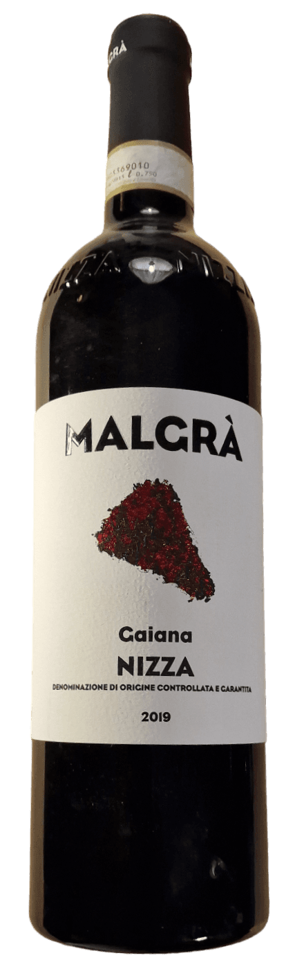 Malgrá Gaiana Nizza 2019 är ett rött vin från Nizza, Monferrato, Piemonte, Italien. Vinet är gjort på druvan barbera. Vingården Gaiana ligger riktad mot floden Belbo River på cirka150 meter över havet och omfattar cirka 5 hektar och ligger inom Mombaruzzo och Nizza Monferrato. De har ytterligare en vingård i Nizza Monferrato från vilken den producerar en riserva, Mora di Sassi som är cirka 3,5 hektar stor.