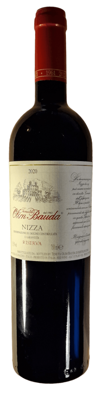 Olim Bauda Nizza riserva 2020 är ett rött vin från Nizza, Monferrato, Piemonte, Italien. Vinet är gjort på druvan barbera. Tenuta Olim Bauda ägs av familjen Bertolino, de har lite drygt 30 hektar med vingårdar. Druvorn till detta vin kommer från vingårdar i Incisa Scapaccino som planterades år 1961.