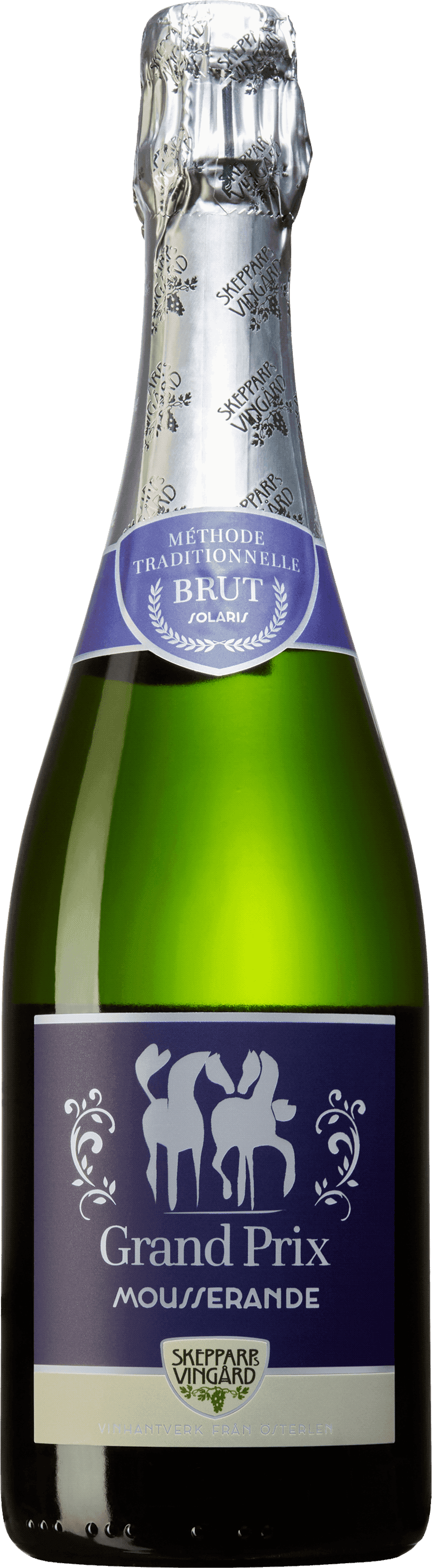Skepparps Grand Prix 2019 är ett mousserande vin från Österlen, Skåne, Sverige gjort på druvorna solaris, rondo och cortis.