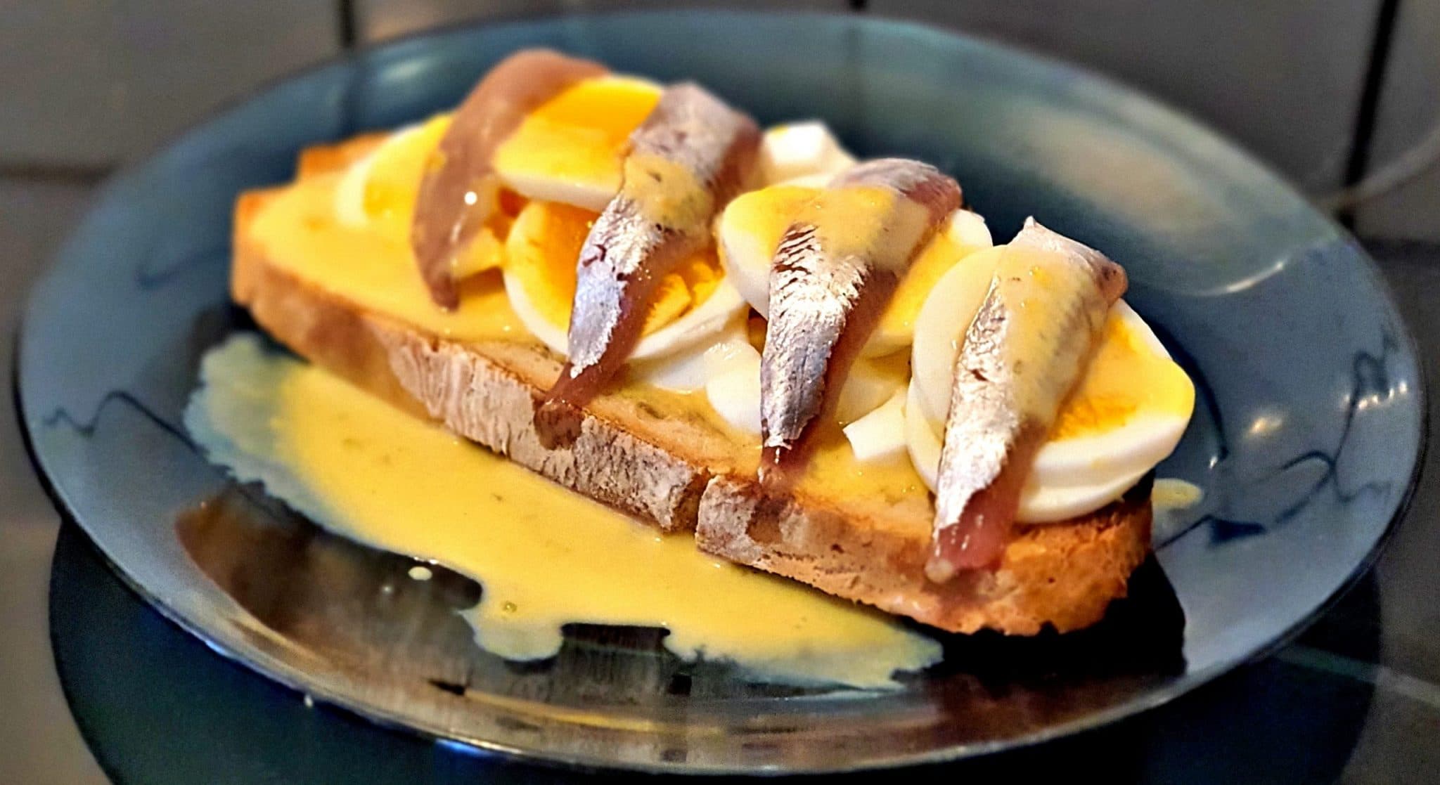 Rosta lite ljut bröd, bre på ett lager smör, lägg på äggen, ansjovisfiléerna och häll på lagom mycket sås. Om du vill kan du toppa det hela med lite dill. Sedan är det bara att sätta sig ned och njuta.