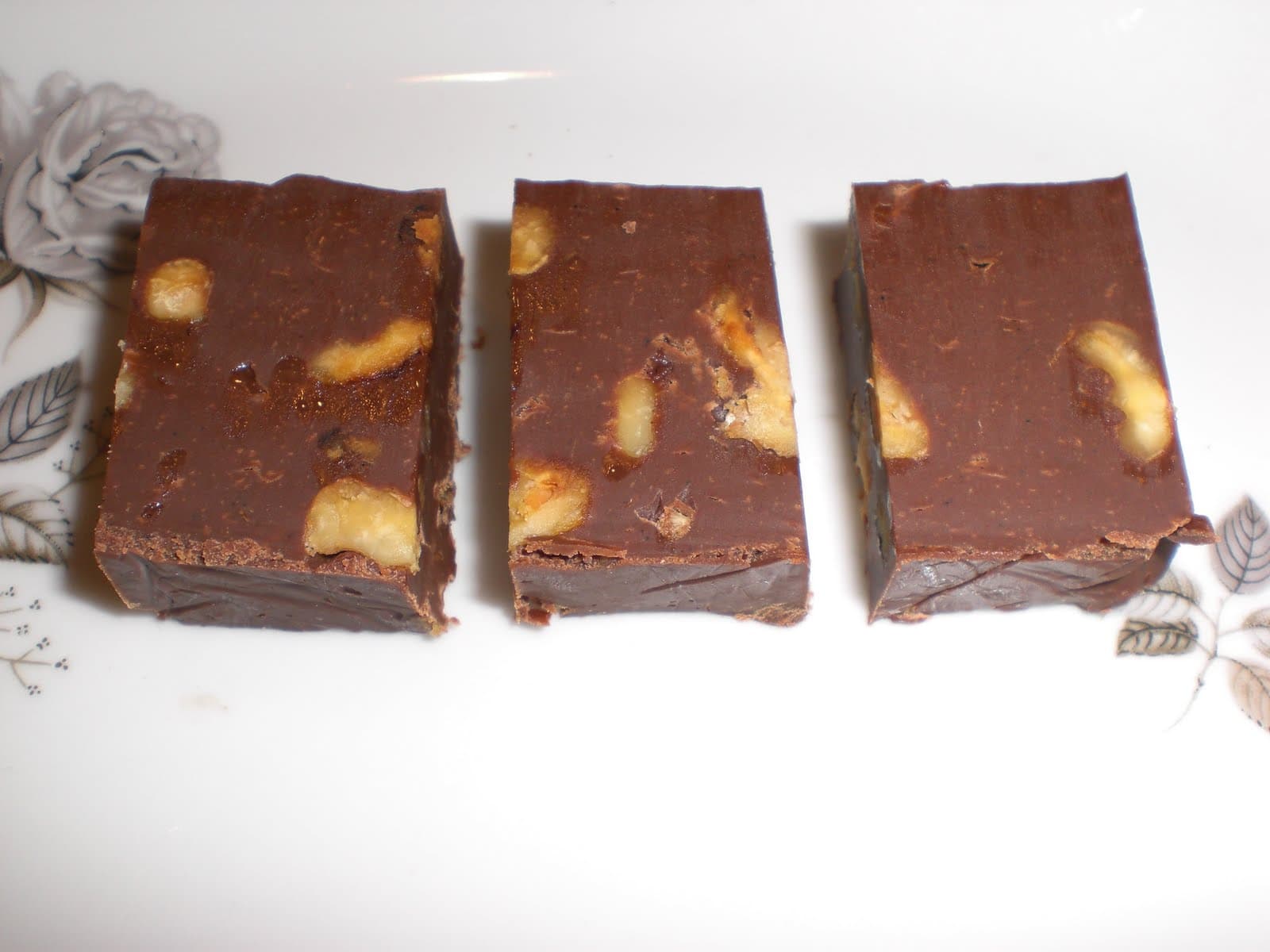 Sätt ugnen på 175 grader. Klä en form, ca 20×20 cm, med baklåtspapper. (En avlång bakform för limpor går också bra!) Hacka nötterna grovt och sprid ut dem glest på en plåt. Rosta dem i ca 10 minuter – passa dem noga så de inte bränns. Lägg smör och salt i en skål och häll i de varma nötterna i skålen. Rör om tills allt smör har smält. Ställ åt sidan. Hacka all chokladen fint och lägg i en bunke tillsammans med kondenserad mjölk. Smält chokladen över vattenbad. Rör om ordentligt. Blanda ner nötter och vanilj i chokladen och häll upp den i formen. Släta till på ytan med baksidan av en sked. Låt svalna och sätt in i kylskåpet i minst en timme. Ta fudgen ur formen och skär den i fyrkanter.
