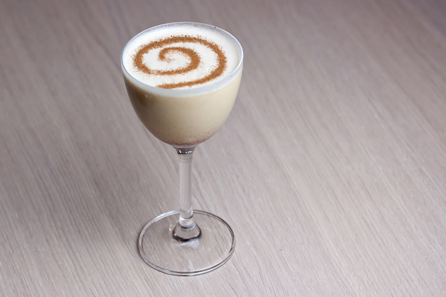 Skaka alla ingredienser med is och sila upp i ett kylt glas. Garnera med kanel.