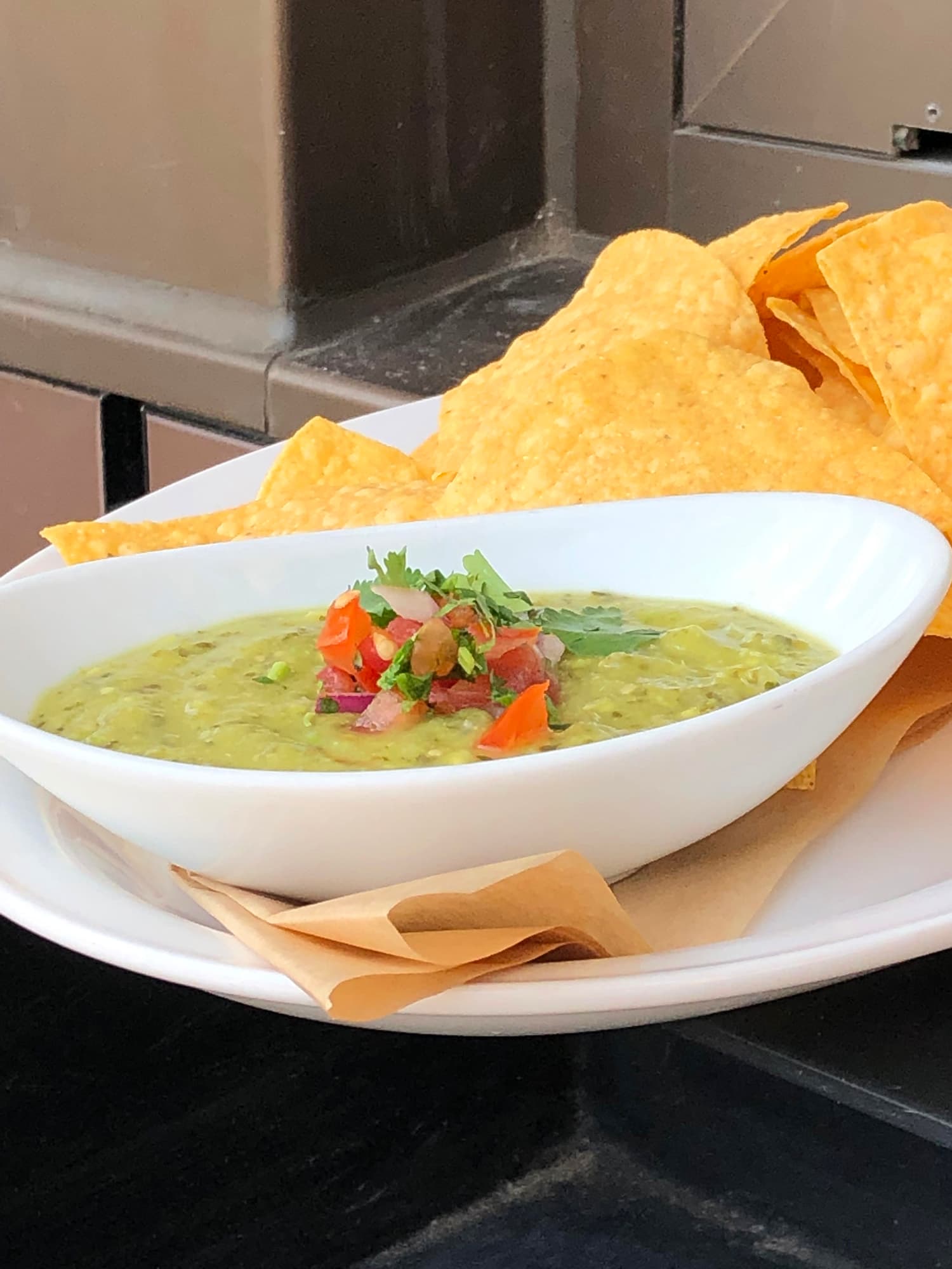 Tänk på att guacamole lätt kan får en brunaktig färg om det står framme, så om du ställer in den i kylen se till att plasta in den eller använd en skål med lock.