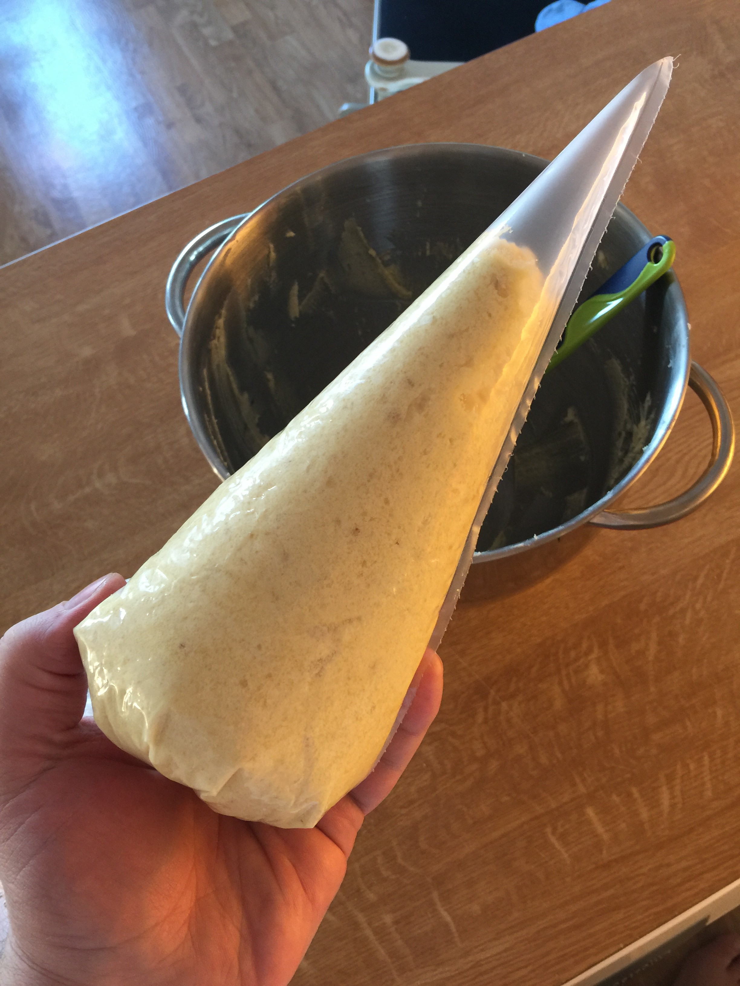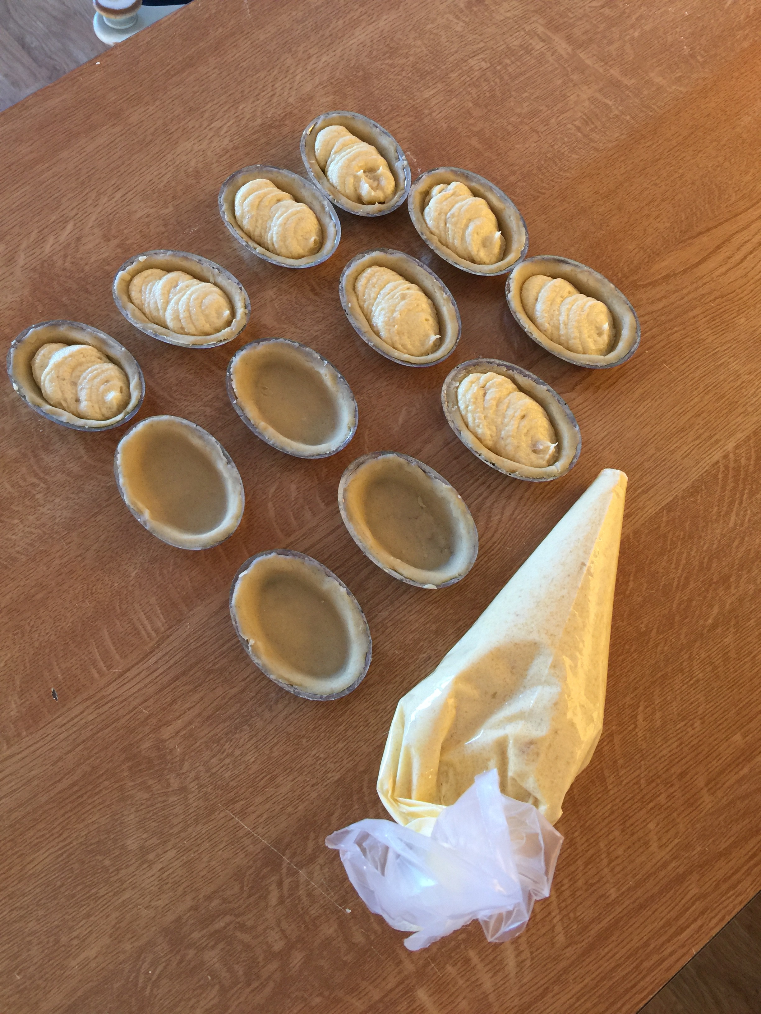 Fyll massan i en spritspåse och förvara den i rumstemperatur tills det är dags att fylla mazarinerna.