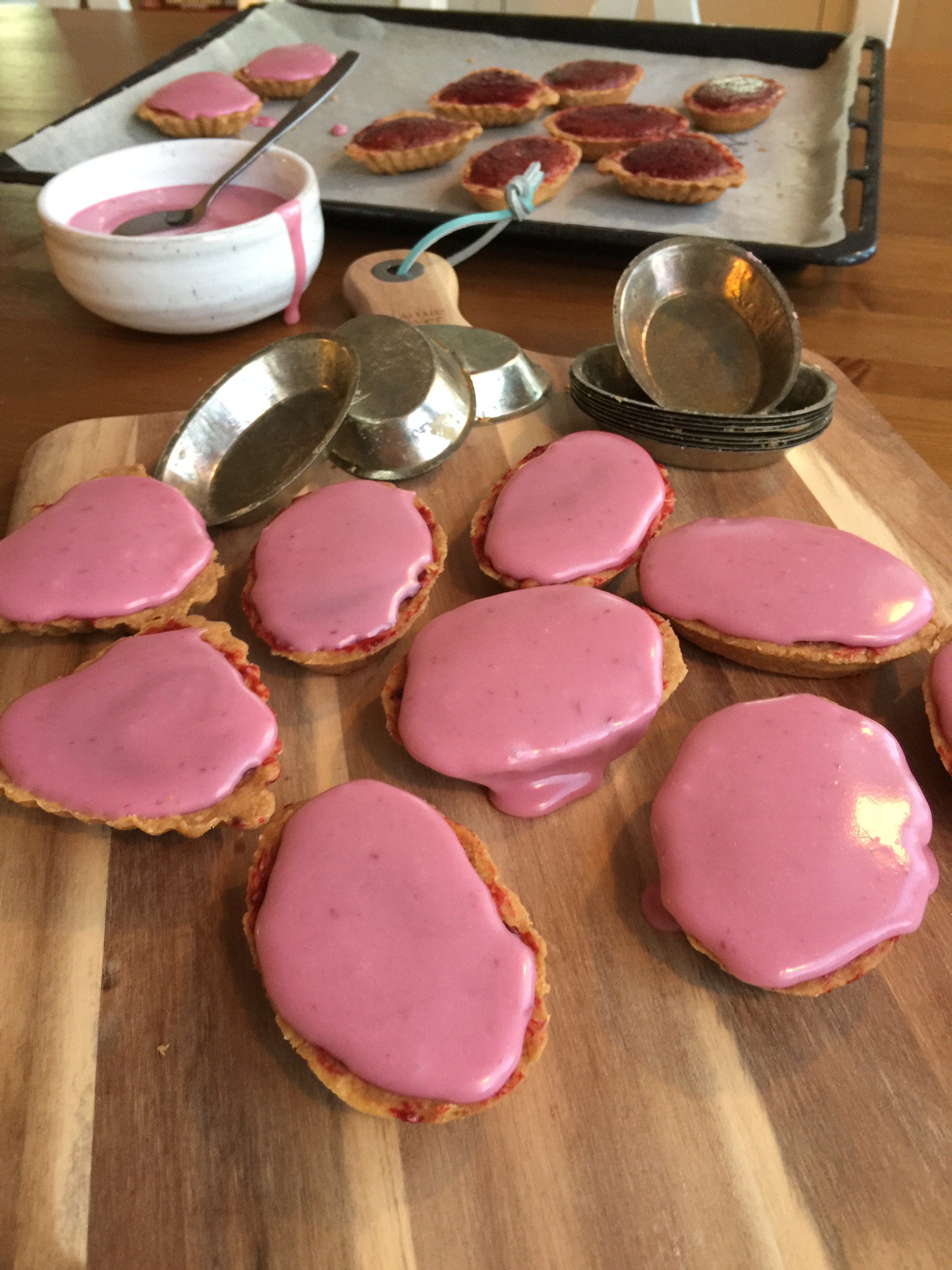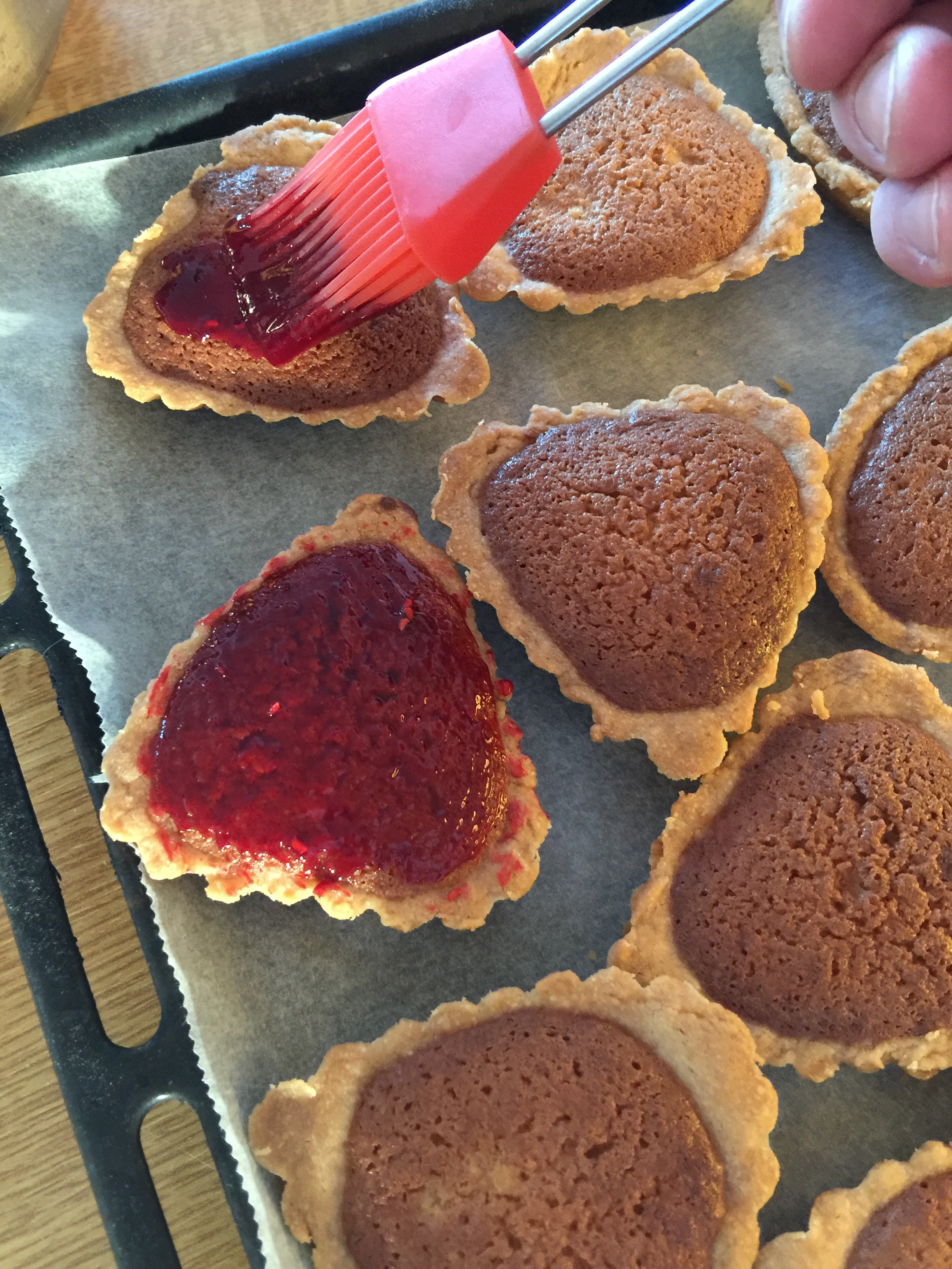När du gjort det kan du blanda ihop ingredienserna till glasyren och stryka på den försiktigt med en sked eller liknande.