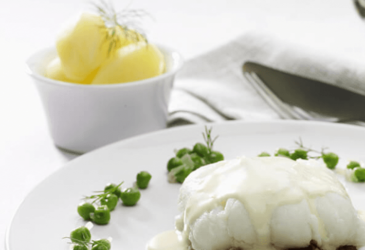 Smält smöret och tillsätt mjölet, rör till en jämn smet, rör i mjölk och grädde. Koka upp.