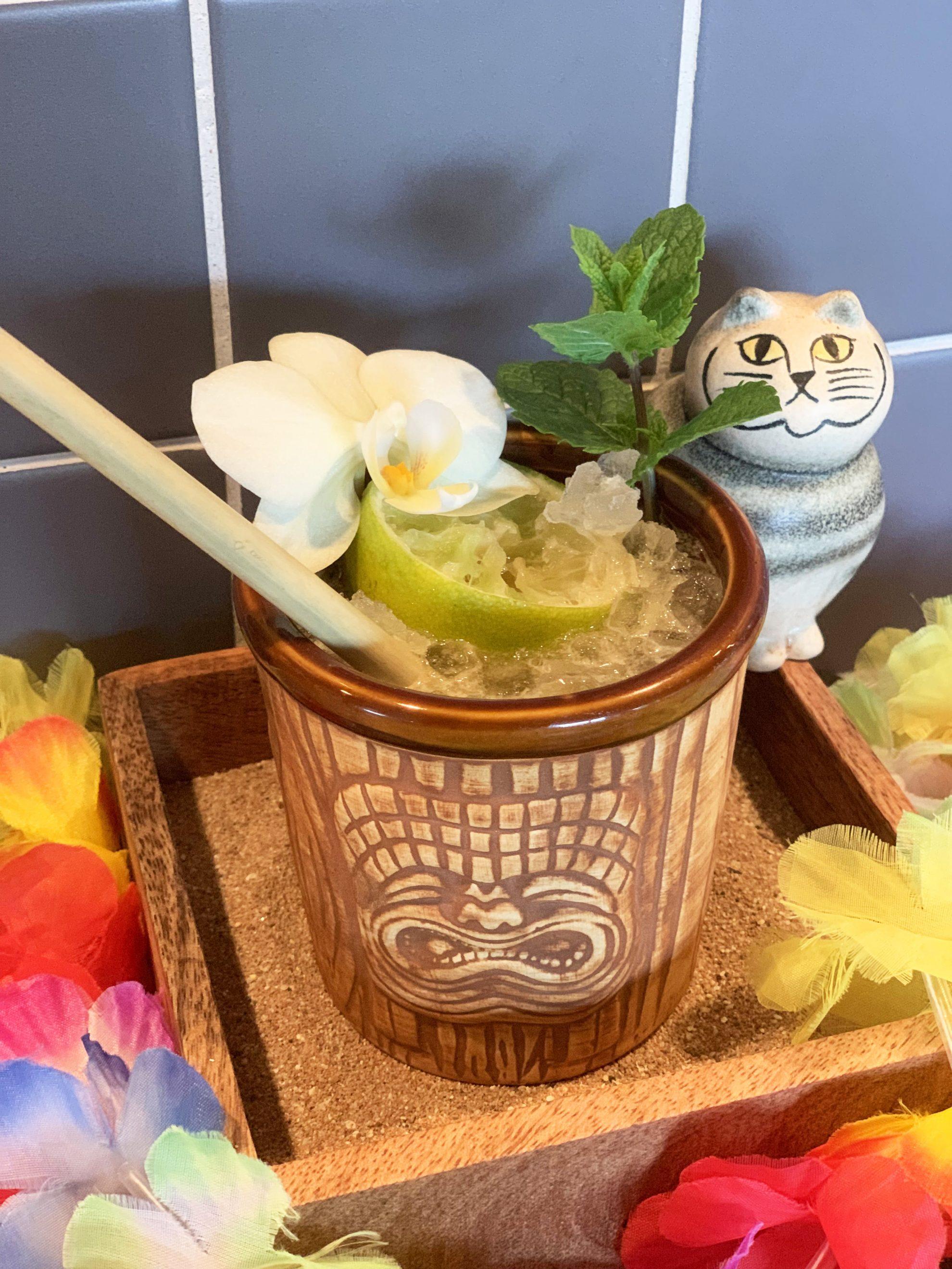 Häll alla ingredienser i en shaker. Använd helst färskpressad limejuice då du behöver en urpressad limehalva till garnering. Skaka med krossad is och häll osilat upp i ett större whiskeyglas. Garnera med limehalvan och en kvist mynta.
