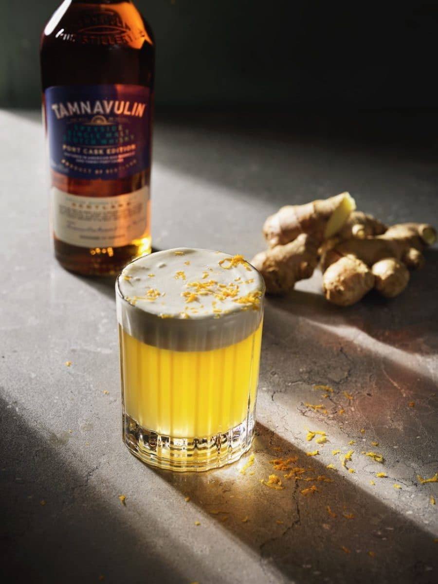 Börja med att värma upp Ginger beer i en kastrull, det ska inte börja koka men nära inpå. Blanda sedan whisky med Ginger beer i ett tjockt glas som tål värme. Rör runt försiktigt och skikta sedan den lättvispade grädden över en sked som du håller nära ytan på drinken. Garnera med riven apelsinzest över grädden.