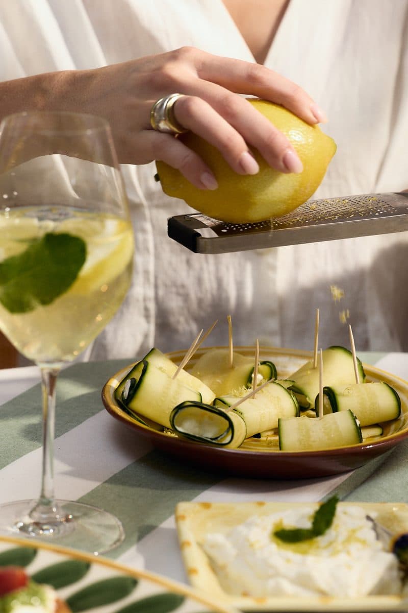 Zucchinirullar med ricotta, mynta & citron (Ca 12 rullar)