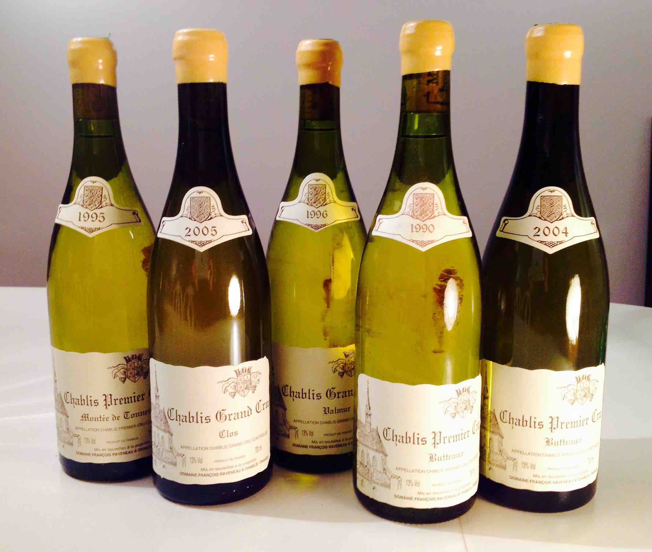 Vinhuset Raveneau disponerar vinmark på fem olika Premier Cru lägen. Montee de Tonnerre som är det mest kända med sin kraftfullhet och höga syra är mest känt. Vidare har man Mont-Mains, Foret, Butteaux och Vaillons. Alla dessa olika lägen är av yppersta klass. Det är svårt att rangordna dem sinsemellan. Din personliga smak får avgöra vilken du tycker är bäst. Bli inte förvirrade av stavningen på etiketten. Det finns inga regler för hur de olika lägena exakt skall stavas utan många går tillbaka till medeltida benämningar vilka varierar en hel del i stavningen. Jämför detta någon gång om ni ser flera viner från olika producenter bredvid varandra. Under de senaste åren har även en Chablis Village börjat produceras. Den första årgången producerades för fyra år sedan.