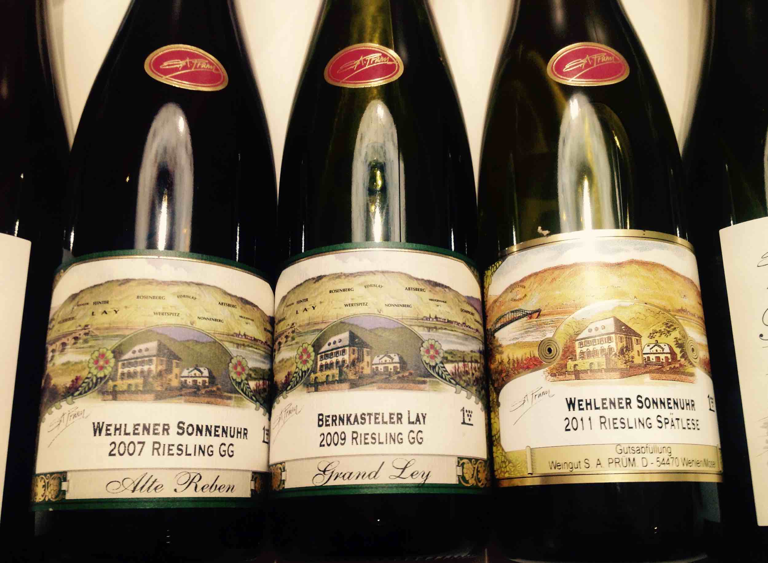 En av de klassiska producenterna i området är S.A Prüm som Spring Wine & Spirits (tidigare Spendrups Vin) börjat ta in till Sverige. Under årets stora VDP provning i Wiesbaden, som vi tidigare redogjort för, var vinhustes S.A Prüms , 2013 Wehlener Sonnenuhr GG, riktigt bra. Men det kommer dröja innan vi får se den i Sverige. Men jag har provat igenom sex olika viner som importeras från producenten idag. På grund av tekniska problem finns bara ett vin på BS (man har missat att ange svavelhalten på etiketten översatt till svenska enligt Carl Brix hos importören). Vinet som finns i BS är S.A Prüm Bernkasteler Lay GG från den fina årgången 2009, #78532 för 245 kronor. Det är riktigt prisvärt för ett så bra vin och därtill från en äldre årgång. Detta vin ståtar med den högsta klassificeringen för torra viner GG, Grosses Gewächs. Här får ni en typisk och klassisk mosel av hög kvalitet. Systembolaget har även vissa flaskor kvar från en tidigare importör med 2009 S.A. Prüm Wehlener Sonnenuhr, Kabinett Trocken #72263 som kostar 194 kronor. Jag föredrar dock det förra nämnda vinet Bernkasteler Lay GG som ger lite mer kvalitet och stringens för ytterligare femtio kronor.