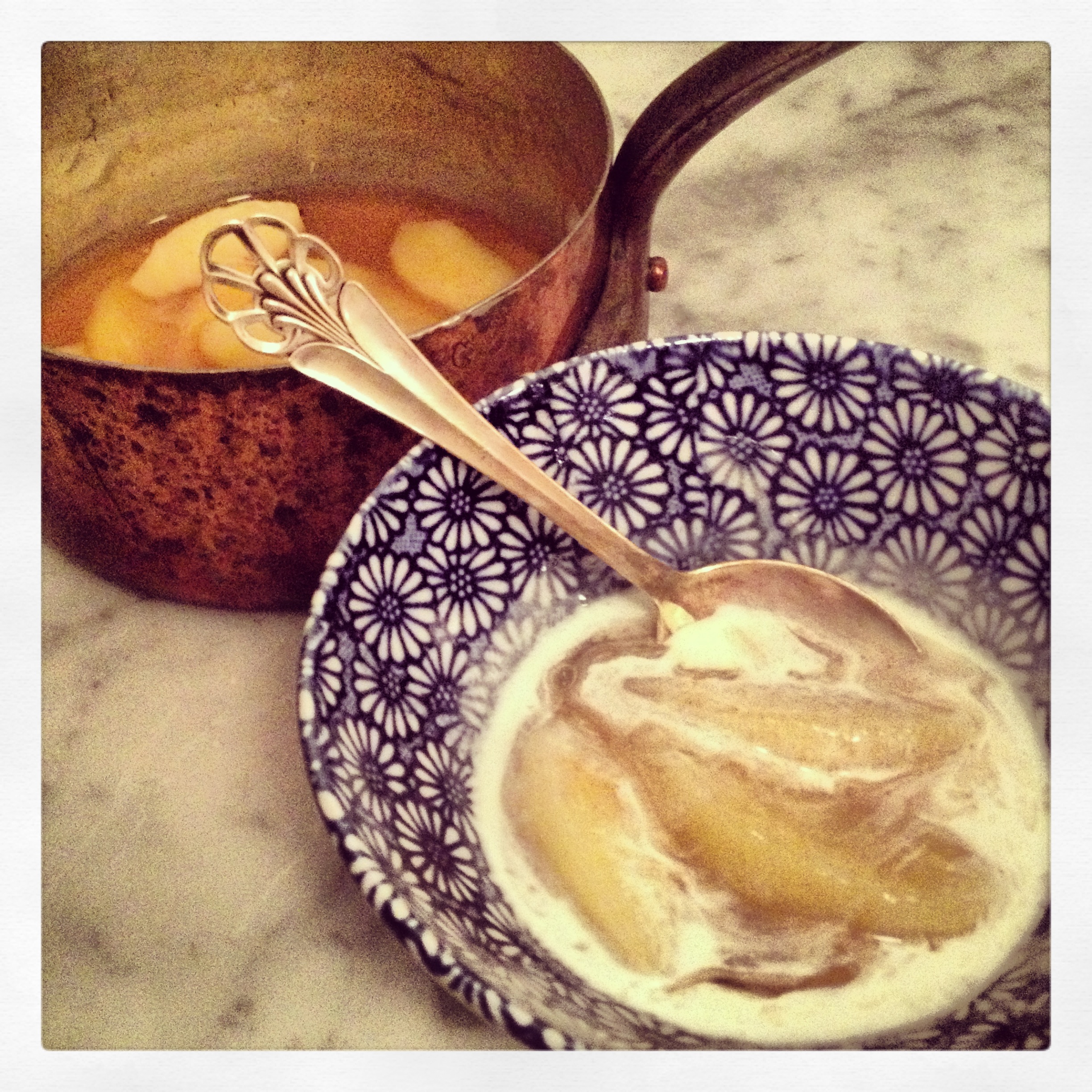 Ytterligare en svensk klassiker, och ett bra sätt att ta till vara på alla mumsiga äpplen som svämmar över i trädgårdarna. Du kan använda fallfrukt också, bara du skär bort de värsta bruna fläckarna för de gör att krämen dels får en lite tråkig färg och att den inte håller lika bra. Jag brukar göra en stor kastrull och när alla ätit sig mätta på den ljumma varianten, med gräddmjölk till så är kompotten ett ypperligt tillbehör till frukostens havregrynsgröt, mellanmålets filmjölk (då helst fjällfil eller långfil med extra kanel på, ja och en liten dutt socker också) och om du gör krämen lite syrlig och med lite mindre bitar så kan du faktiskt äta den till middag också. För rätta mig om jag har fel, men finns det något godare än fläsk, kål och äpple?