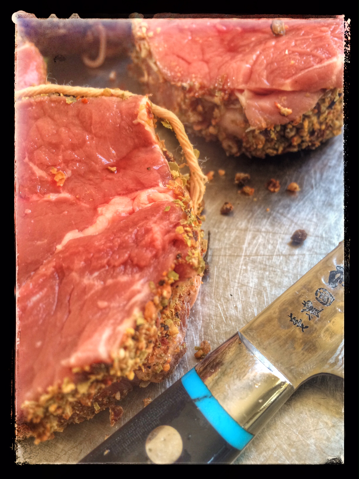 Jag använde grönpeppar, tasmansk svartpeppar som har en underbar arom av enbär och fänkål, cambodiapeppar som smakar nybakat bröd och enbär samt Cubépeppar som har toner av mentol, citrus och rosmarin. Jag har hittat mina pepparsorter på OliOli