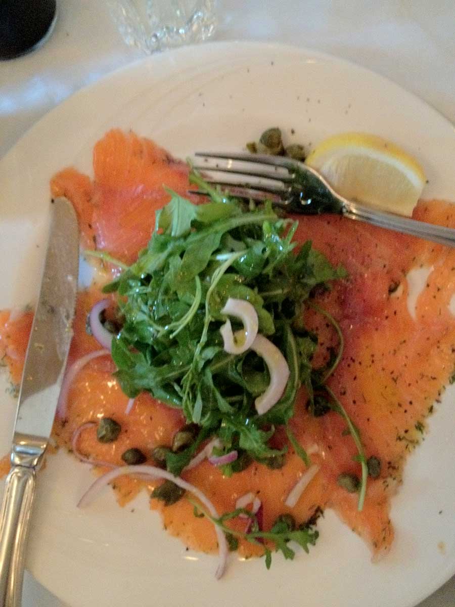 Gravad lax är nog något av det somrigaste som jag vet. Trots att vi äter den både till jul och påsk så tycker jag att det är sommar på riktigt. En annan sak som är utomordentligt somrigt är picknick. Jag pratade ju om några tips häromdagen på radion. Något som jag fått för mig inte är speciellt vanligt på en picknick är just gravad lax. Det är lite synd för den är bra, mättande och god. Du kan till exempel göra en lättmumsad bagel med just gravad lax, färskost och rödlök eller stoppa ner laxen i en sallad, med pestodressing och pasta. Och om man vill ha en lite mer arbetad picknick så kan man faktiskt ta med sig lite färskpotatis, silverbestick och en porslinstallrik i en stilig korg. Glöm då för all del inte glasen och vinet!