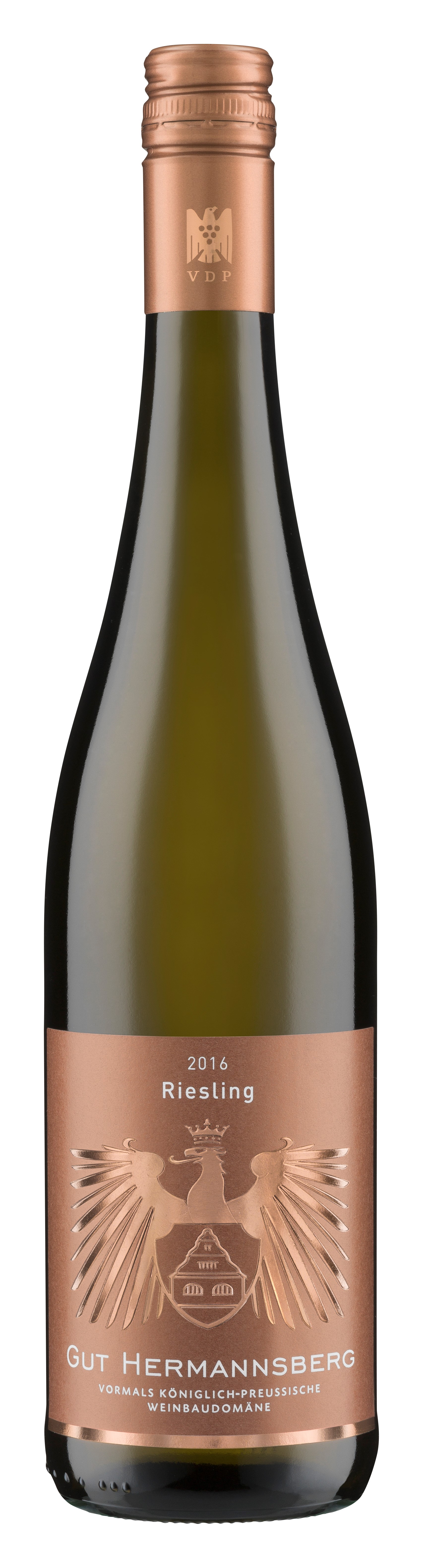 Vi bjuds på ett torrt vin med saftig fruktighet, enorm syra, mineralitet samt ett rent och långt avslut. Vinmakare är Gut Hermannsbergs, erkänd för sin höga kvalitet och ambition. Druvorna till just detta vin kommer från de flesta av egendomens vingårdar och är därför en bra sammanfattning av egendomens karaktär. Samtliga vingårdar är högt klassificerade, de steniga och branta vingårdarna kräver mycket manuellt arbete samt ger en mycket låg avkastning. Druvorna skördas för hand och pressas varsamt. Musten får jäsa med naturlig jäst vid låg temperatur på rostfria ståltankar. Vinet lagras sedan flera månader tillsammans med sin jästfällning på ståltank innan det till sist når våra glas. Njut kall som den är eller till skaldjur, lättare fiskrätter och milda ostar.
