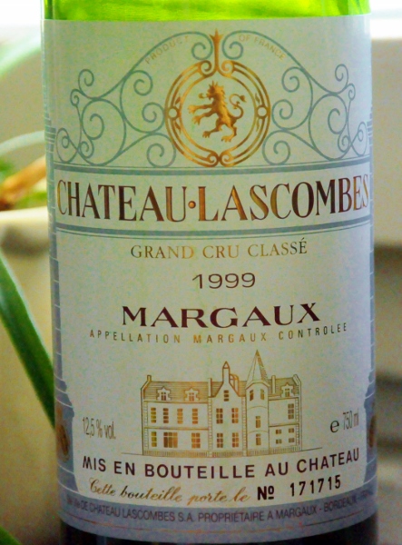 Chateau Lascombes 1999 (har inte hittat den exakta blandningen men druvorna är merlot, cabernet sauvignon och petit verdot)