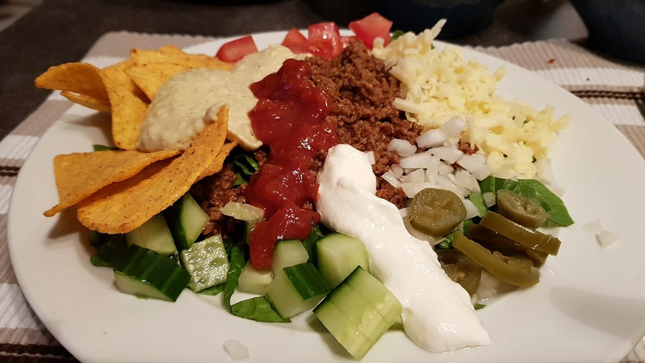 Personligen brukar vi servera taco tillsammans med en sallad snarare än som fyllda tacos. Främst för att det känns fräschare och lättare. Maten ser också vackrare ut så. För att skapa den där extra guldkanten och få känslan av lite mer än vardagskrubb så är vin en bra komponent. Min taco-sallad är förhållandevis het och smakrik. Därför vill jag ha ett vin som antingen är rent och fräscht, gärna med en liten sötma alternativt ett rött vin med lite fruktig ton och fin fräschör.