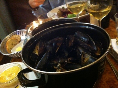 Maten var bra. Lite chark till förrätt och sen moules frites till varmrätt. Vinet var också grymt, till slut….