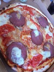 Vi packade upp pizzorna på köksbordet hemma. En Italia och en Ruccola. Och visst var det gott! Jag kan varmt rekommendera Ivanders för er som har vägarna förbi Stureby. Inte bara för matens skull utan främst för mannen själv. Vilken hjälte! Han gjorde verkligen min dag!