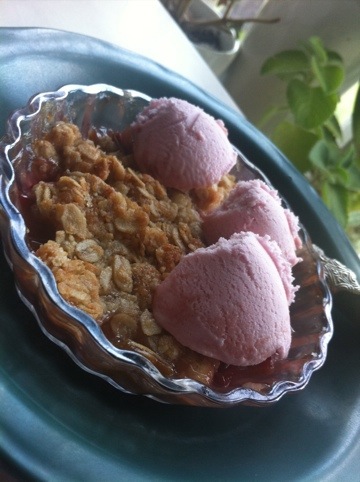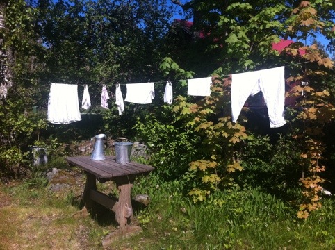 Min älskade granne Ewa kommer att göra mig tjock! Hon älskar att bjuda in mig på fika, bullar, kakor, tårtor och paj. Igår var inget undantag. Ska inte klaga dock, så hennes bakverk är av yttersta kvalitet. Det dukades helt sonika fram en liten portionsform med rabarberpaj som serverades med jordgubbsglass. Uppvärmd i ugn smakade denna himmelska lilla skapelse sådär söt-syrligt-knäck-kolaaktigt som bara en bra rabarberpaj kan göra. Tack fina Ewa för att du tar så väl hand om mig! (Idag har jag ägnat mig åt terapiarbete och hängt tvätt)