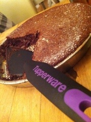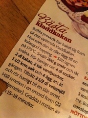 Idag blev jag inbjuden till mitt livs första Tupperware-party hos min fina vännina Ewa. Tydligen firar detta gamla plastföretag 50 år vilket berättigade oss till en gratis plastflaska vid beställning! Så visst beställde jag. Visst kände jag mig lite 90-tal, men prylarna var riktigt kluriga! Så, det blev en mekanisk grönsakshackare och en pastatång. Men kronan på verket var nog Ewas fullkomligt lysande kladdkaka! Lite som att äta smeten, fast på ett gudomligt sätt! Jag fick tillåtelse att dela med mig av receptet och Ewa hämtade ett litet gulnat utklipp från en tidning. Och där var det. Guldreceptet. Lägger med det som ett foto, så fram med läsglasögonen och sätt på ugnen! Kör hårt!