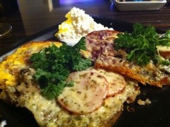 Efter att ha fixat monter på ‘Mitt Kök’ så blir man lite seg o trött. Jag visste inte om jag skulle gå ut o äta, fixa nåt hemma eller bara skita i det hela. Efter moget övervägande och ett glas vitt bestämde jag mig: jag gjorde en grundlig genomgång av kylskåpet och svängde ihop två riktigt goda varma mackor. Jag gjorde tre steg på mackan. Salami, brie o svartpeppar, trattkantareller, kittost och dragon och till sist mozarella, tomat och basilika. Allt på samma fina landgång! Riktigt gott! Nu blir det lite tv och ett täcke i soffan! Ses i montern. (B01:30)