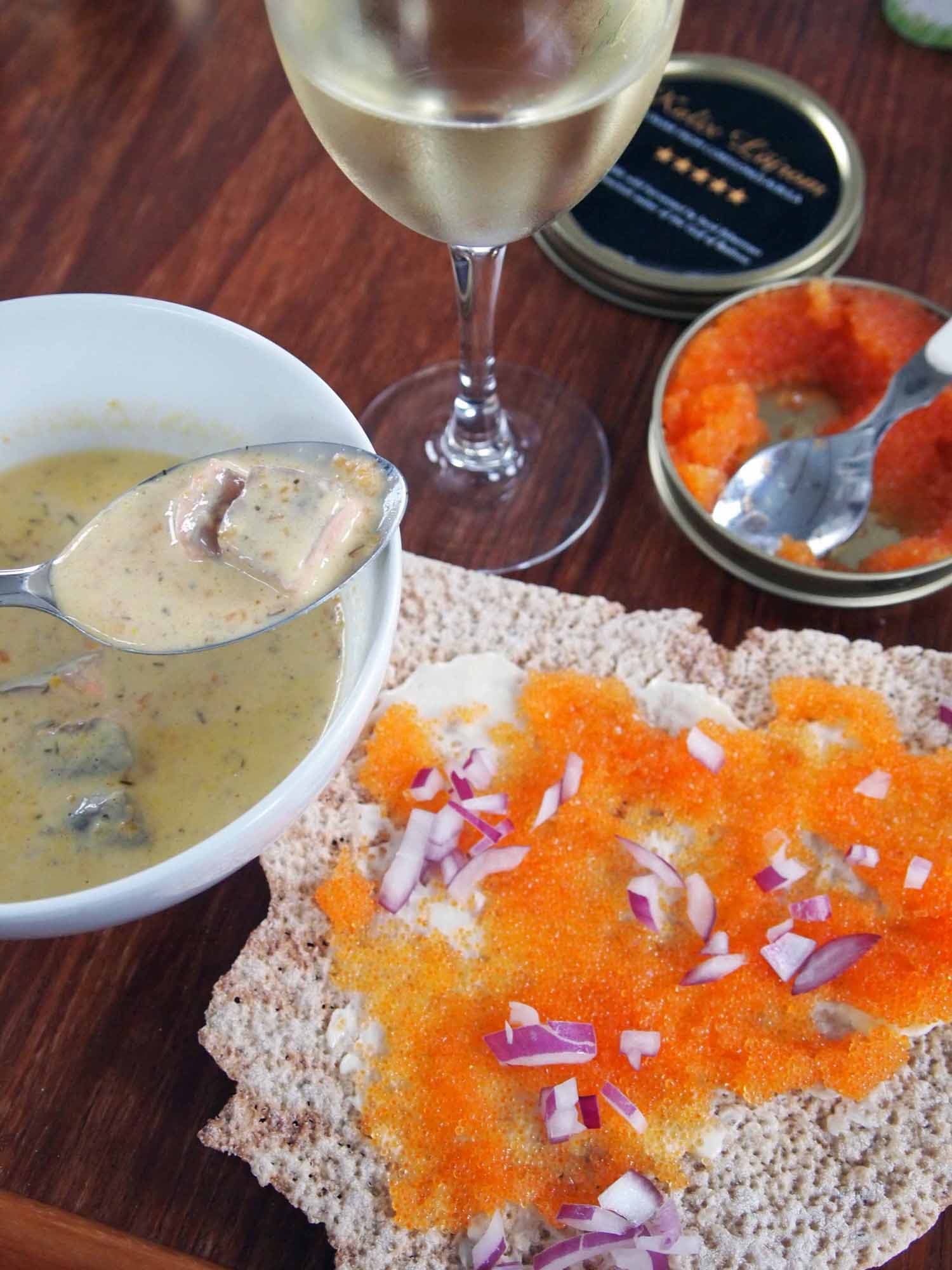 Färskpotatis med gräddfil, löjrom och salladslök