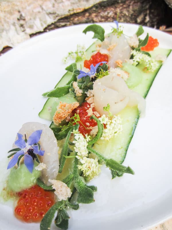 Tobias Andersson, krögare och kökschef på Edsbacka Bistro i Strängnäs bjuder på en lättrimmad mälargös med isört-, fläder- och limevinägrett, gurka, forellrom och levainsmulor. Bjud på denna fräscha rätt redan i helgen!