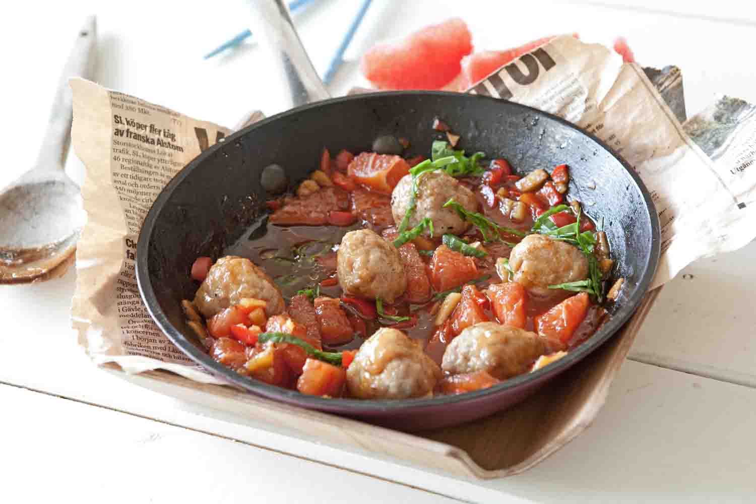 SÖTSURA KÖTTBULLAR AV KYCKLING MED GRAPEFRUKT OCH RÖD PAPRIKA 4 port