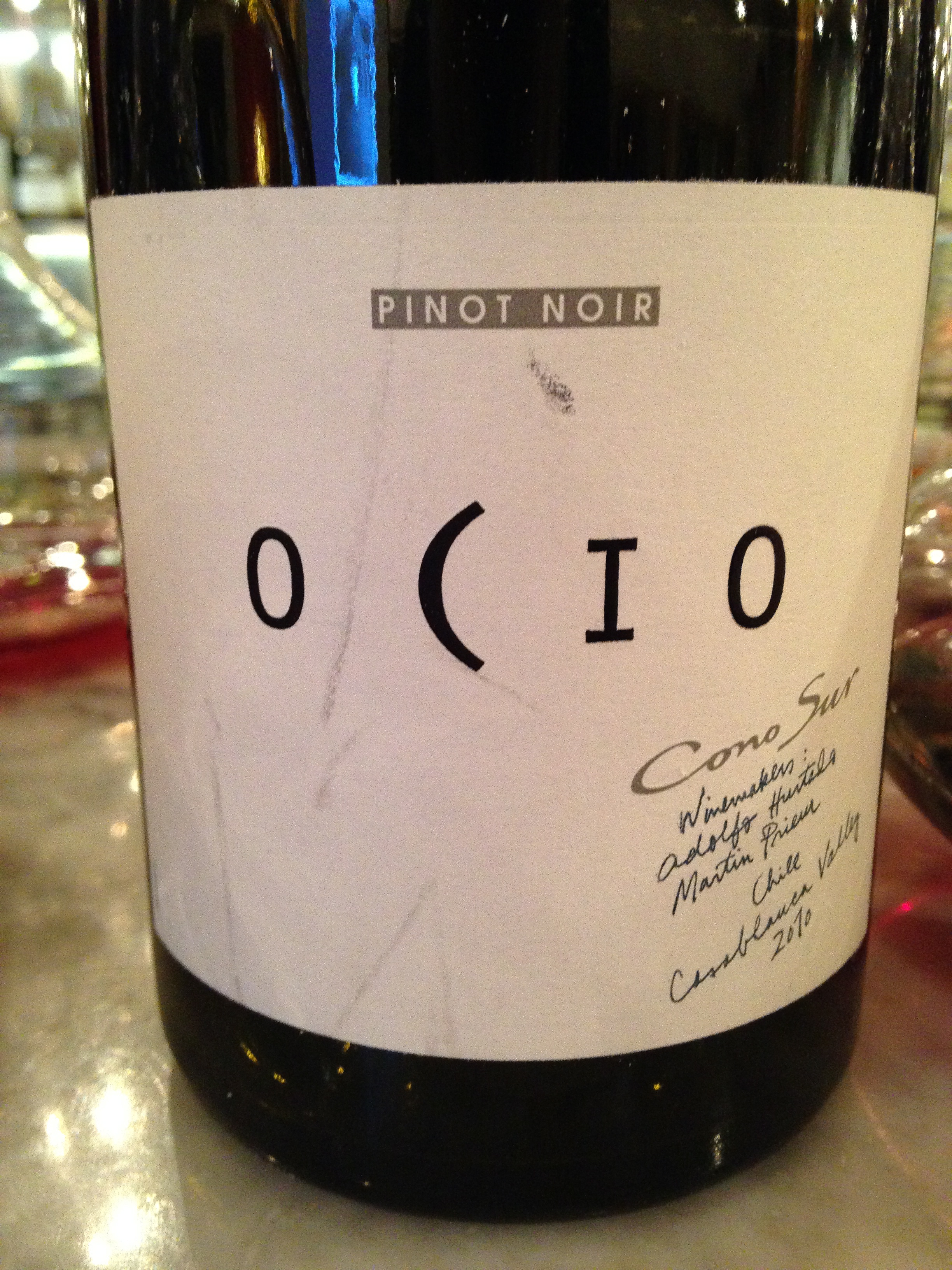 Ocio. Det spanska ordet för kul, nöje och fritid. Det är också ett vin, ett toppvin. Gjort på 100 % pinot noir. Glöm allt som har med Bourgogne eller Nya Zeeland att göra. Glöm lätthet och elegans. Jord och våta stenar. Röda syrlig frukt och örter. Det här är inte klassisk pinot noir. Det är Chile. En annan världsdel, annan terroir och en helt annan stil.