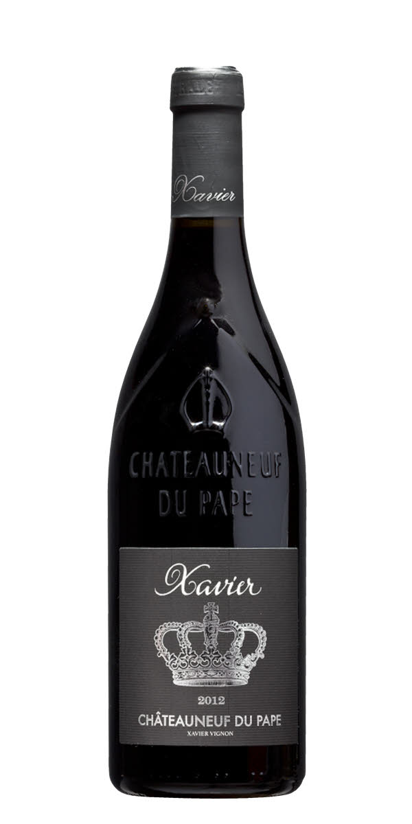 Chateauneuf-du-Pape blir på svenska; påvens nya slott. Namnet har en naturlig förklaring och kom till då två påvar byggde sig ett litet sommarhus – läs palats – i området under 1300-talet. Idag finns bara ruiner kvar av slottet men vinerna de består. Särskilt röda viner, som dominerar i Chateauneuf-du-Pape. En liten del vitt görs också, men endast fem procent. Resten är rött och där är framför allt druvan grenache den mest odlade. Även druvor som syrah, mourvèdre och cinsault är viktiga. Fast för producenten Xavier är det favoritdruvan grenache som gäller. Hans påvevin innehåller 60 procent grenache, 25 procent mourvedre och 15 procent syrah.