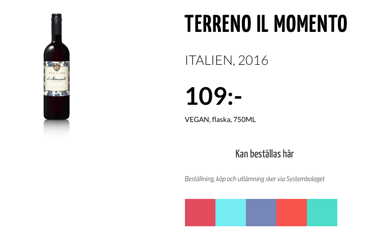 Nytt vin från den svenskägda vingården Terreno i Toscana. Fyllt med energi, röda frukter, örter och viol.*section**section**section**section**section**section**section**section**row*